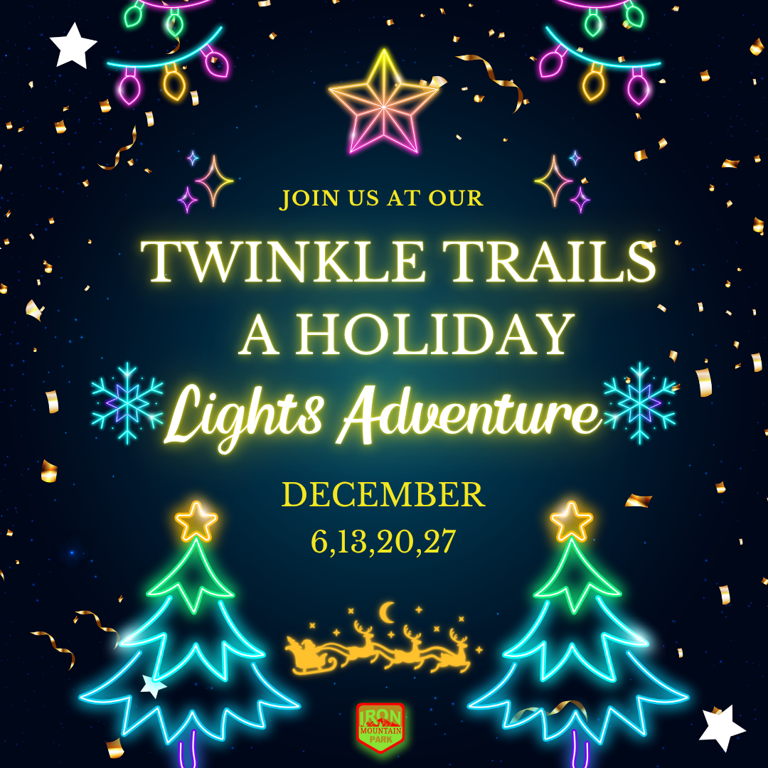 β¨ Twinkle Trails: A Holiday Lights Adventure β¨ Get ready to light up your December! Join us at Iron Mountain Park for a magical, glowing ride through the Twinkle Trails β happening every Saturday in December: Dec 6, 13, 20 & 27. ππ Bring the family, load up the off-road toys, and experience the mountain like never before! β¨ Donβt miss this festive holiday tradition!
