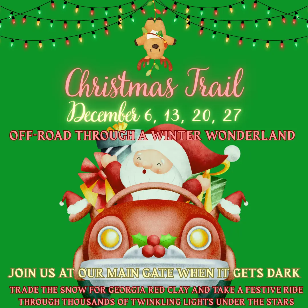 Experience the magic of the season on our Christmas Off-Road Trail! Wind your way through an illuminated off-road route filled with dazzling Christmas lights and festive displays. This unique holiday adventure is included with regular parking passes. An off-road vehicle is required. Bundle up, load up the family, and enjoy a one-of-a-kind Christmas ride through the lights!